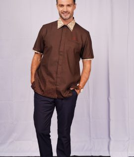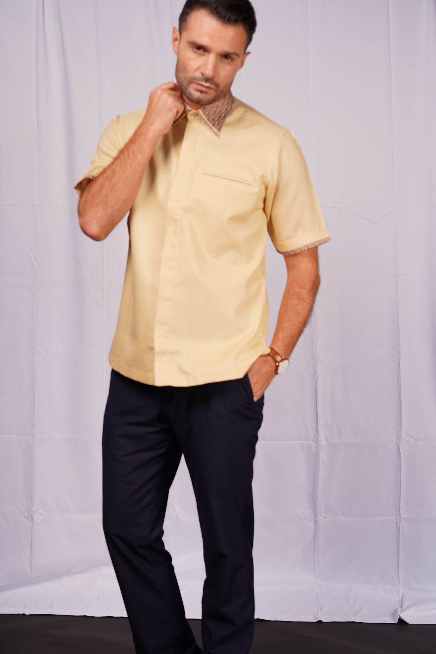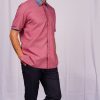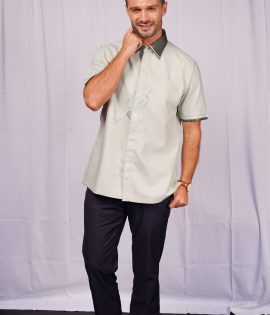 Shirt in woven fabric with an easy-iron finish. Turn-down collar, classic front and darts and darts and a yoke at the back. Short sleeves. Gently rounded hem. Slim Fit with narrow shoulders and a tapered waist for a fitted silhouette. Added Swarovski stone.