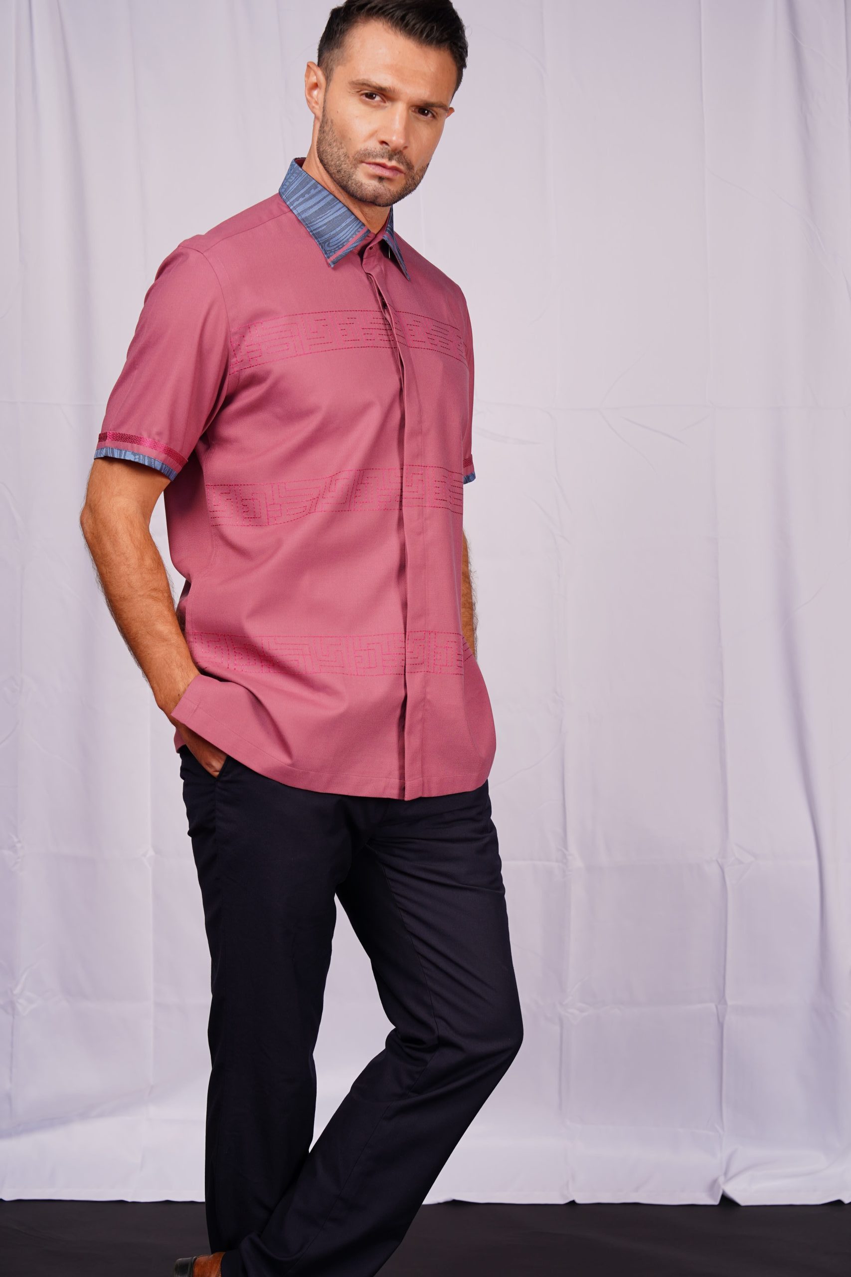 Shirt in woven fabric with an easy-iron finish. Turn-down collar, classic front and darts and darts and a yoke at the back. Short sleeves. Gently rounded hem. Slim Fit with narrow shoulders and a tapered waist for a fitted silhouette. Added Swarovski stone.